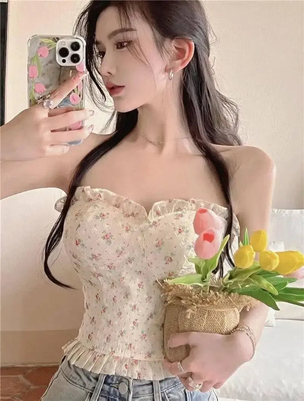 Descrição do produto para Hot Girl Floral Lingerie Tube Top Feminino Fishbone: