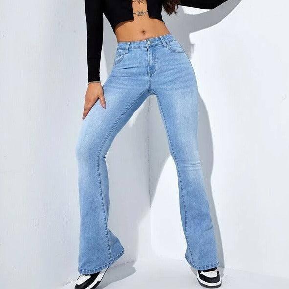 Calças elásticas de cintura subida e ajuste fino de moda feminina