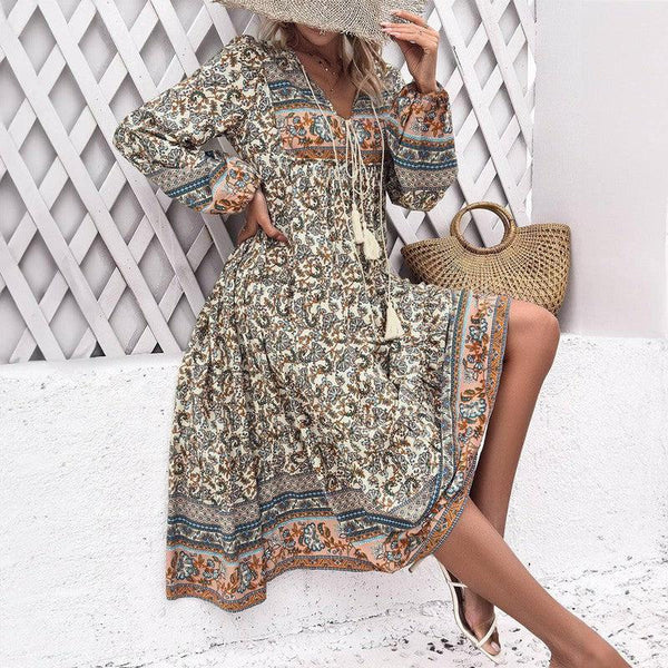 Moda feminina Casual Holiday Manga comprida estampada Maxi
