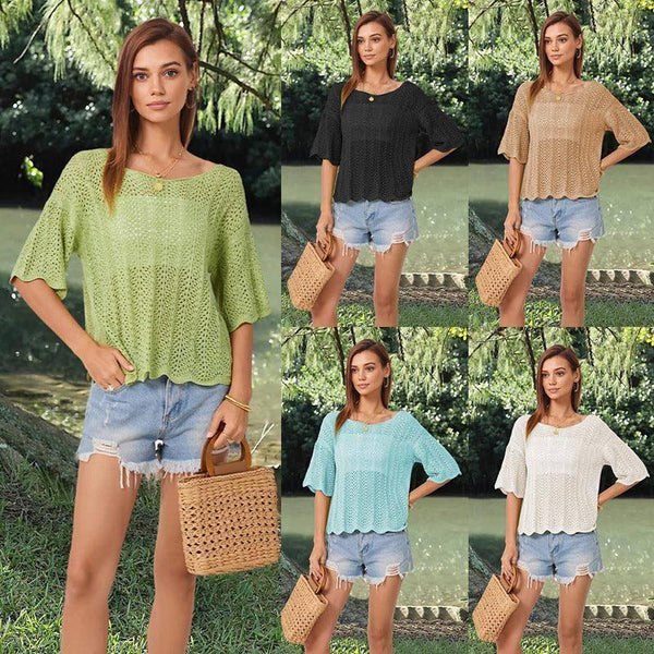 Moda oca Manga curta Casual Malhas para mulher