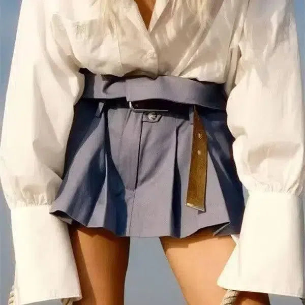 Estilo europeu e americano Estilo universitário de cintura alta plissada