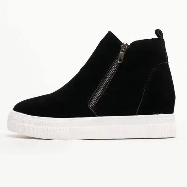 Calcanhar de cunha sazonal Calçado único com fecho de correr lateral para mulher