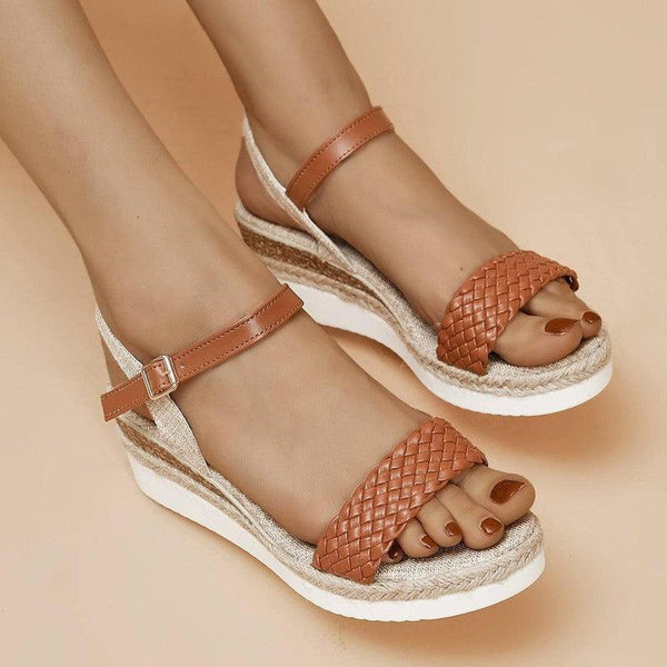 - Tipo de produto: Sandálias de cunha de linho trançado
