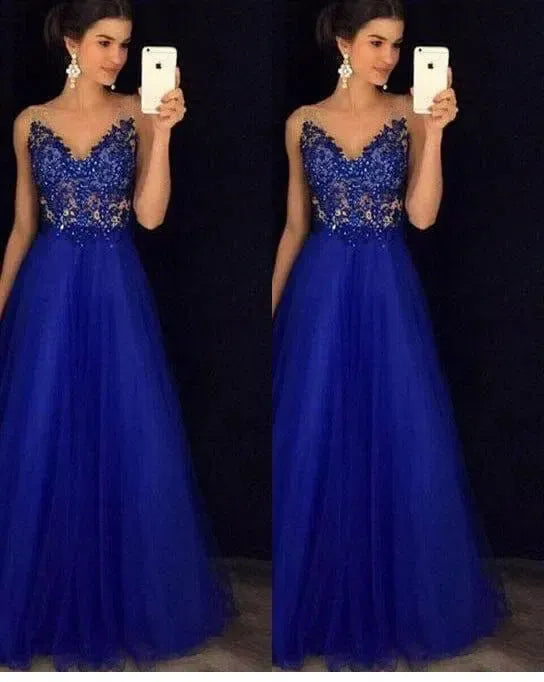 Vestido Bola sem costas com brilhantes Vestido comprido azul Chiffon