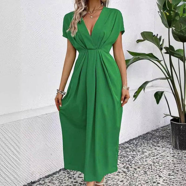 Cor sólida Ombro em V profundo Manga Dobrada Cintura elástica
