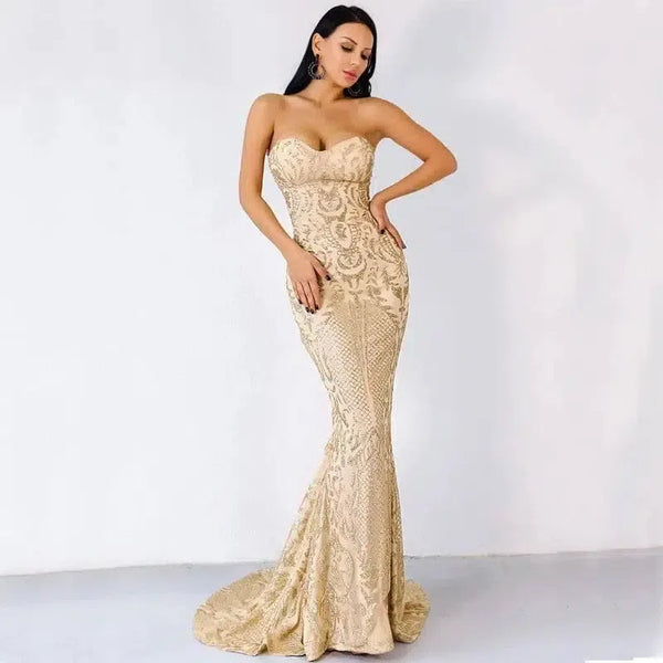 VESTIDO DE NOITE GEOMÉTRICO ELEGANTE SEM ALÇAS