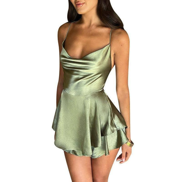 Vestido de linha A com alça de cetim sem costas de corte justo para
