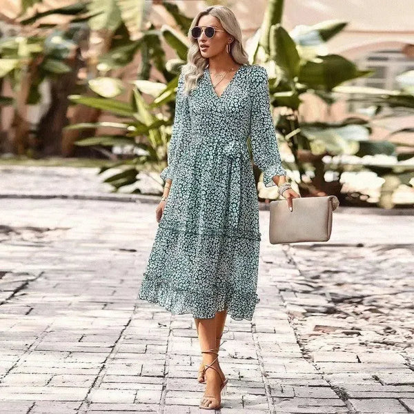Temperamento Elegante Decote em V 34 Manga Ombro atado Floral
