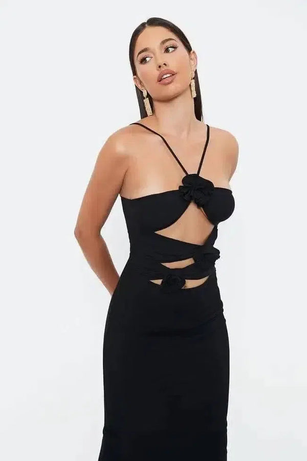 Vestido com suspensório de comprimento médio com decote oco e florido