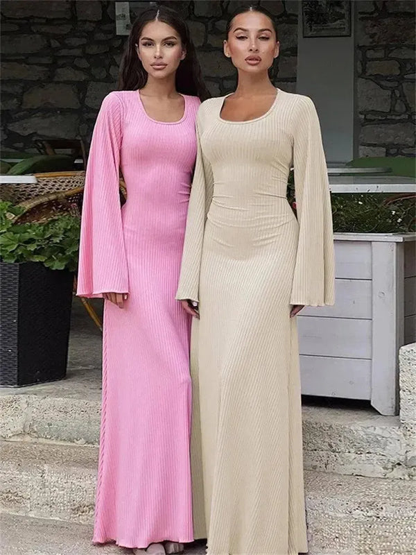 Vestidos Maxi Elegantes | Manga comprida canelada