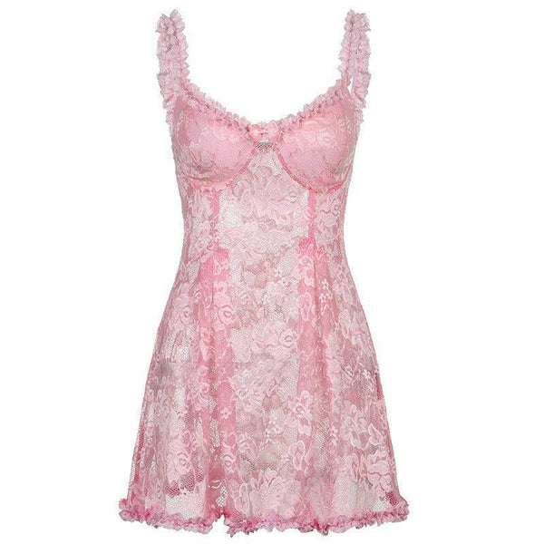 Descrição do Produto: Vestido Camisola em Renda Perspetiva com Decote em V