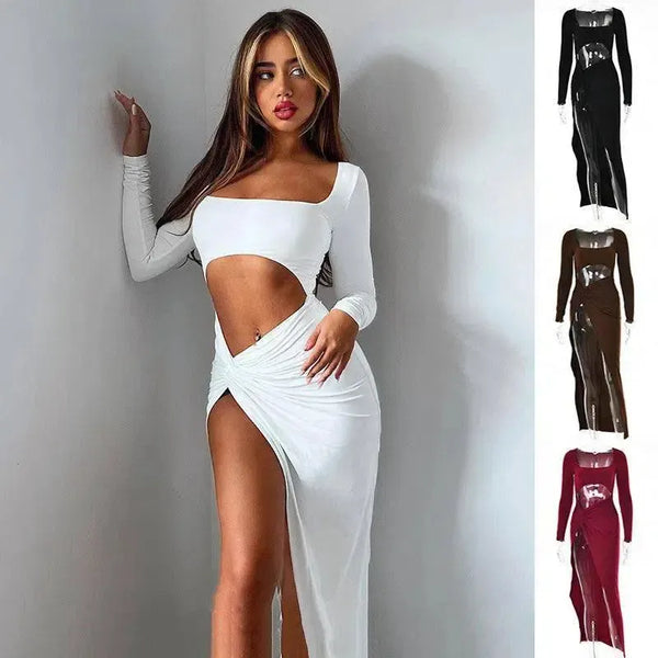 Roupa de mulher Vestido de manga comprida Vestido de festa com decote em U oco Casamento