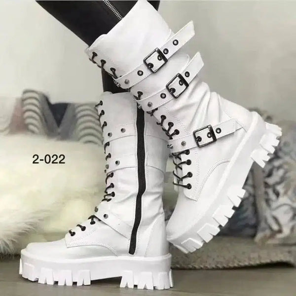 Botas femininas Martin Boots Lace Up Combat Boot Mid Calf Platform